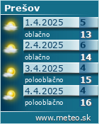 Podrobná predpoveď počasia pre mesto prešov na dnes.